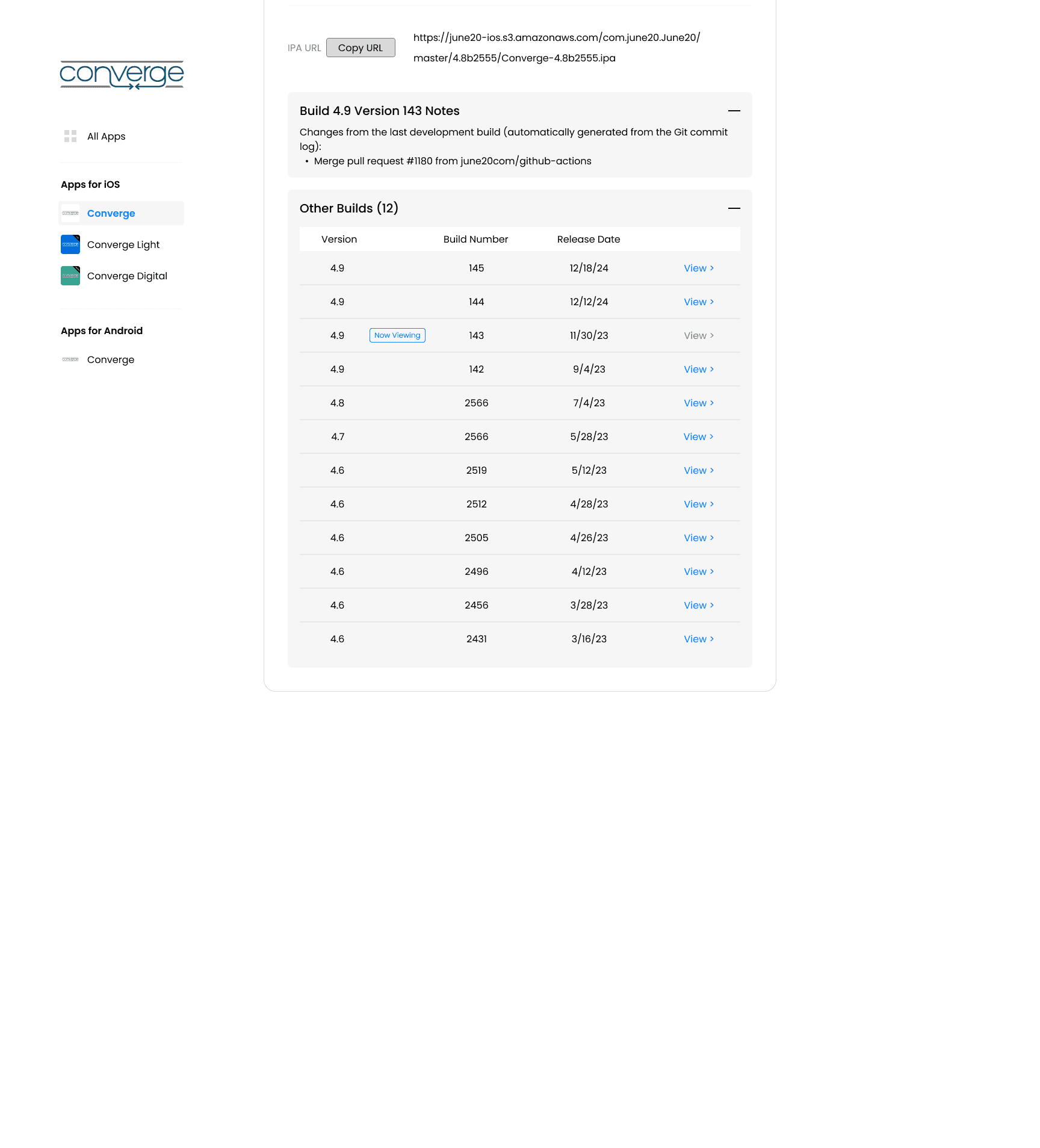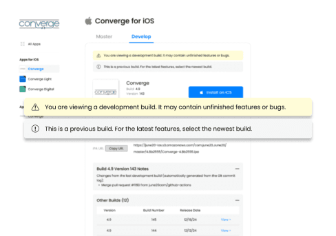 Designed a centralized homepage that showcases the latest production and development builds, eliminating the need for users to remember multiple URLs. Integrated a simple toggle or tab system to switch between production and development builds, while also offering easy access to historical builds for further details.